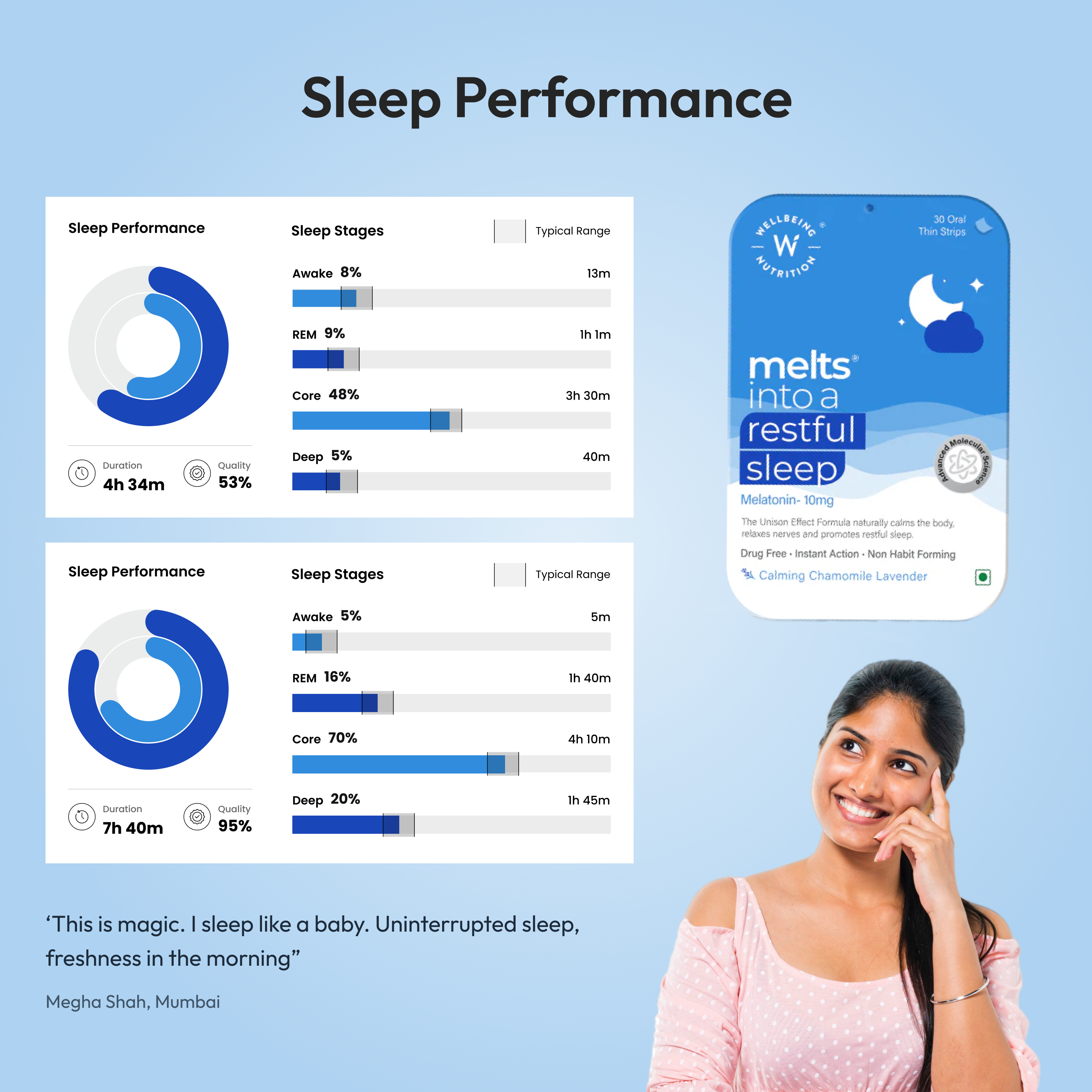 Wellbeing Nutrition's melts® for sleep works wonders! I fall asleep faster and wake up refreshed. Highly effective and convenient!