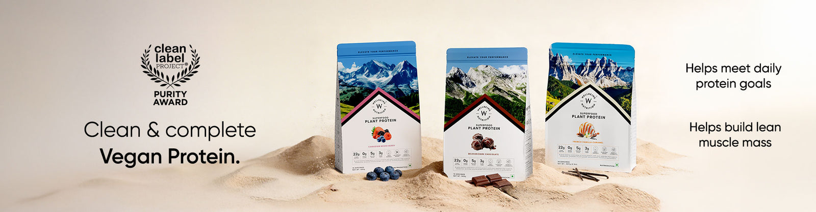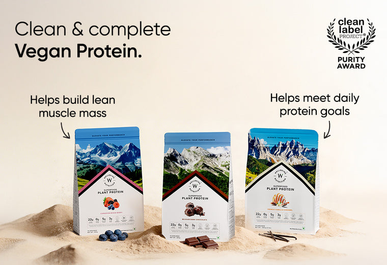 Wellbeing Nutrition's Protein powder range is the only one in India infused with Velositol® - a patented ingredient combining amylopectin and chromium that are clinically proven to double muscle protein synthesis in just 8 weeks. The range offers products like Unflavoured Whey Protein Isolate which provides 31g protein per scoop, Dark Chocolate flavored Whey Protein Isolate infused with Velositol® which provides 26g protein per scoop, Unflavoured Whey Protein Concentrate which provides 27.1g protein per scoop, Cappuccino flavored Whey Protein Isolate + Concentrate Blend infused with Velositol® & Glutamine which provides 24g protein per scoop and Swiss Chocolate flavored Whey Protein Isolate + Concentrate Blend which is also infused with Velositol® & Glutamine and provides 24g protein per scoop. Apart from this, for people on a vegan or plant-based diet, Wellbeing Nutrition also offers the Superfood Plant Protein available in a variety of flavors which provides 22g of protein per scoop.