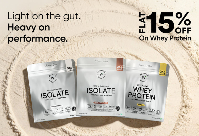 Introducing Wellbeing Nutrition’s protein powder - a premium collection of whey protein and plant-based protein supplements to fuel your fitness journey. Clean, gut-friendly, and backed by science, they are tailored for diverse fitness and health goals making them the best protein powders in India seeking high-quality and effective nutrition solutions.