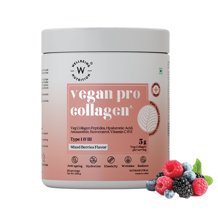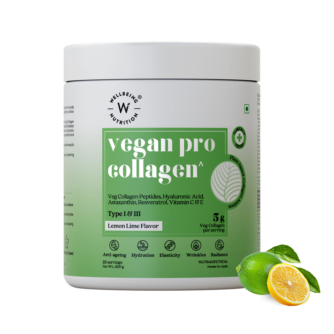 Vegan collagen helps boost skin elasticity, smooth fine lines, hydrate from within, and improve hair and nail strength. It also supports joint and bone health, making it a holistic wellness supplement.