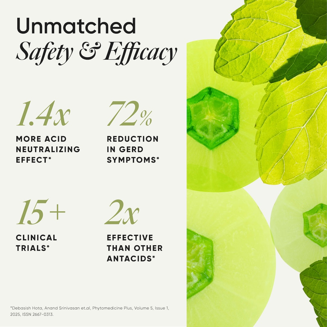 • Infused with Time-Tested Botanical ExtractsAmla, Caraway, Fennel, Mint, and Anise work synergistically to soothe acidity and indigestion.