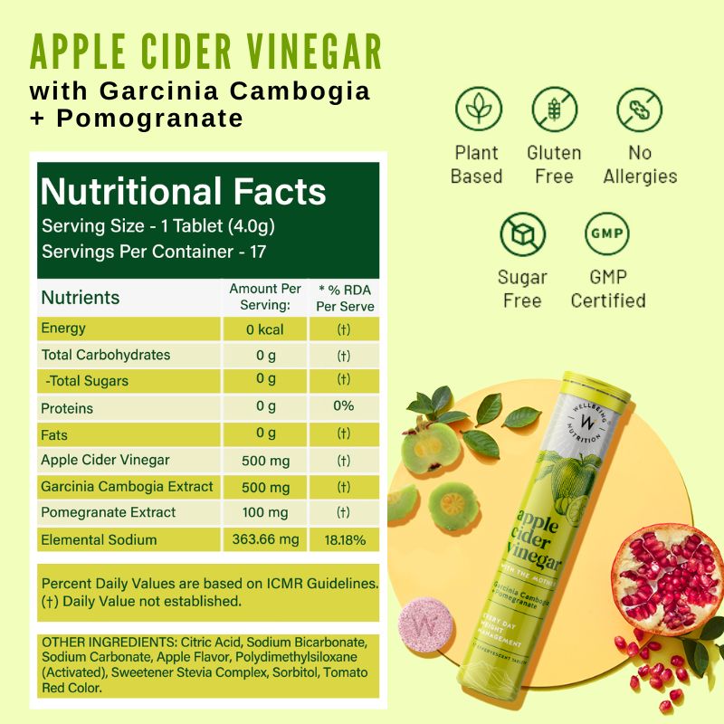 One apple cider vinegar tablet helps you with internal detoxification, strengthening your immune system, weight control, and a healthier heart, gut, and skin.