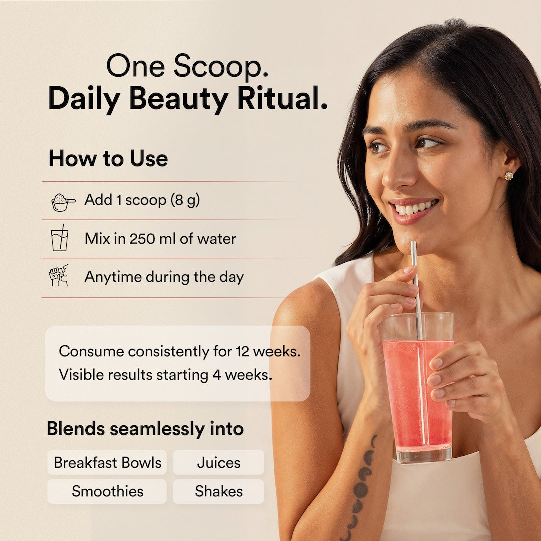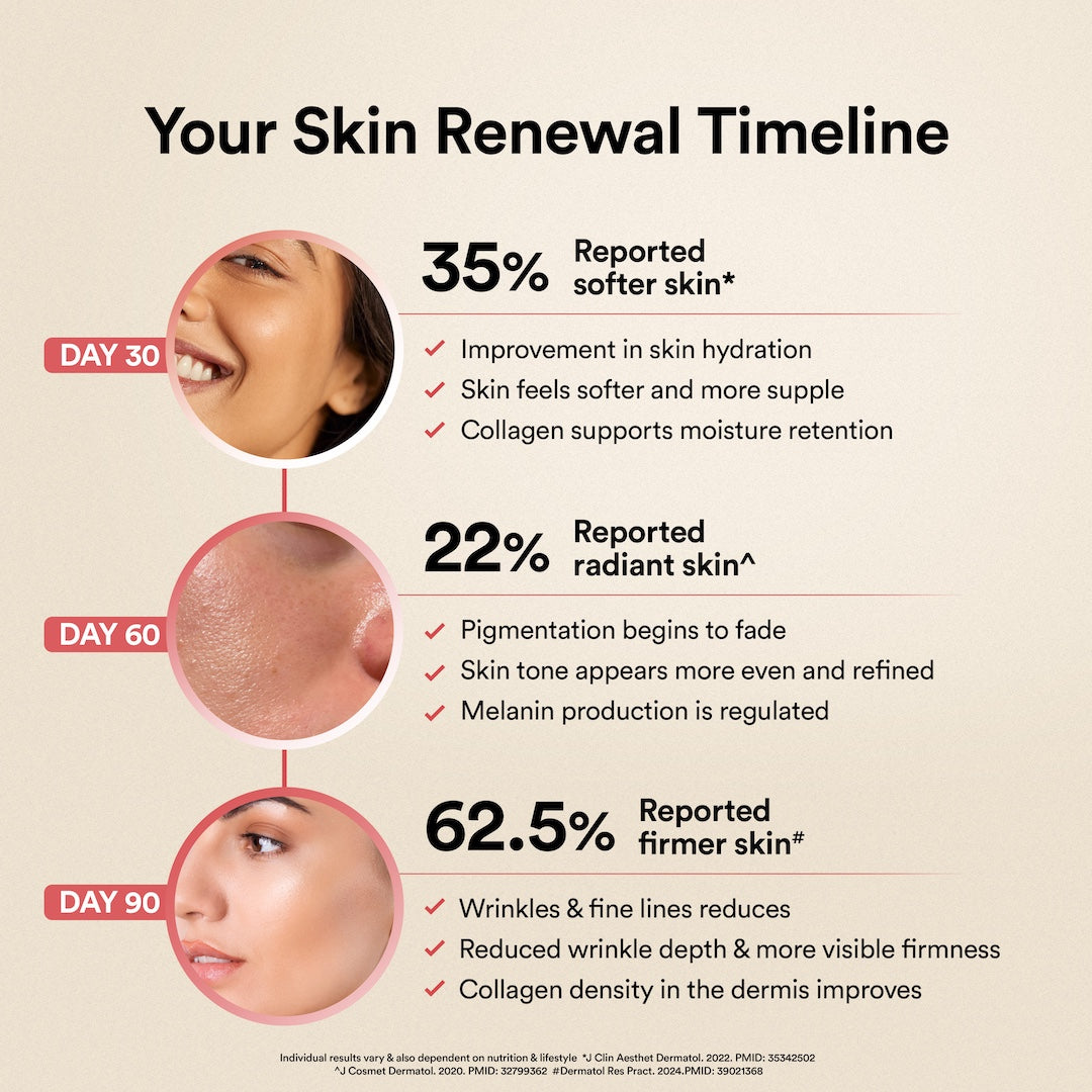 Users report brighter, hydrated, firmer skin in 4–6 weeks, with improved hair and nail health too.