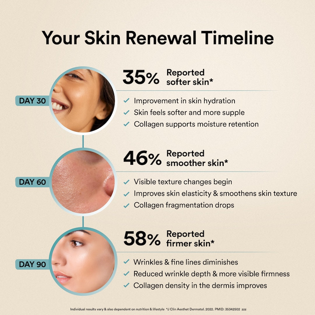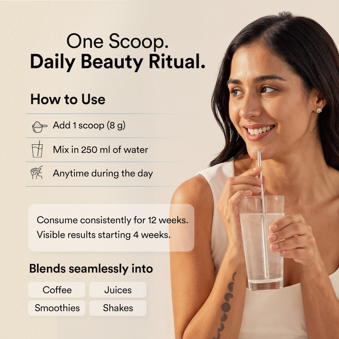 Collagen peptides improve skin elasticity by stimulating natural collagen production. This helps reduce wrinkles, fine lines, and sagging. Consistent use can result in firmer, hydrated, and more youthful-looking skin.