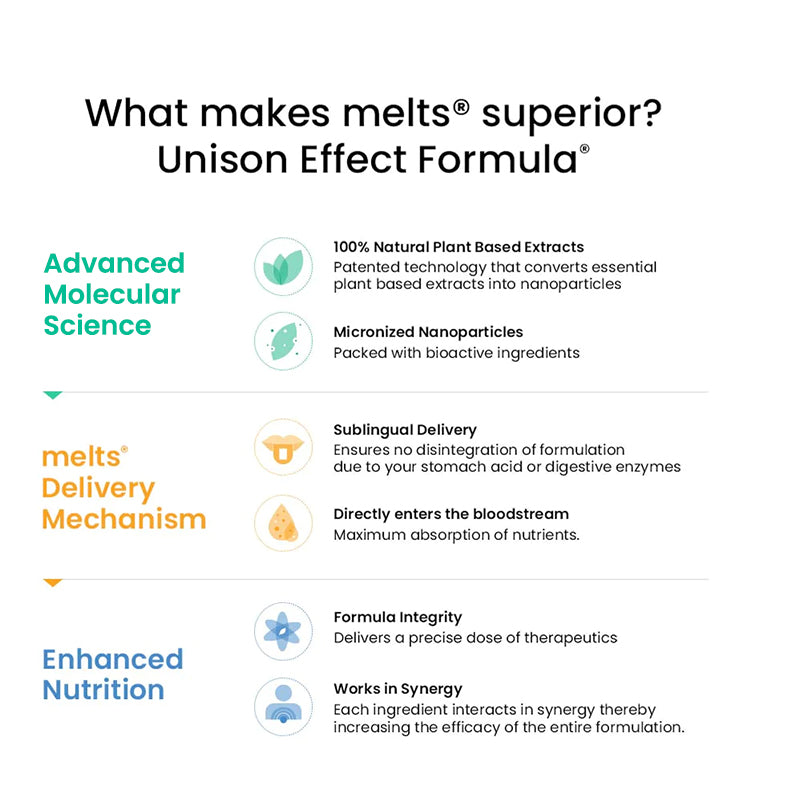 Unlike capsules or tablets, melts® dissolve instantly on your tongue for faster absorption and better bioavailability. No water, no swallowing—just easy eye nutrition on the go.