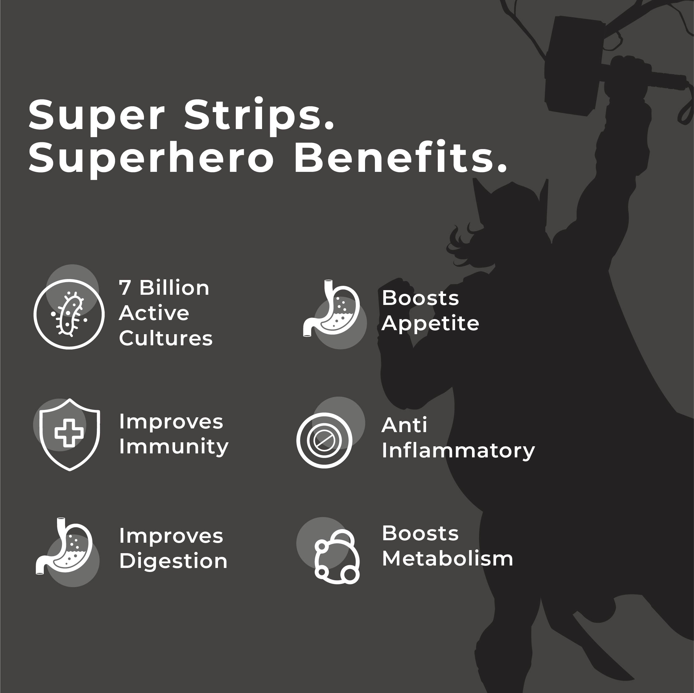 Each strip delivers 7 Billion CFU of beneficial probiotic strains to effectively support gut health.
