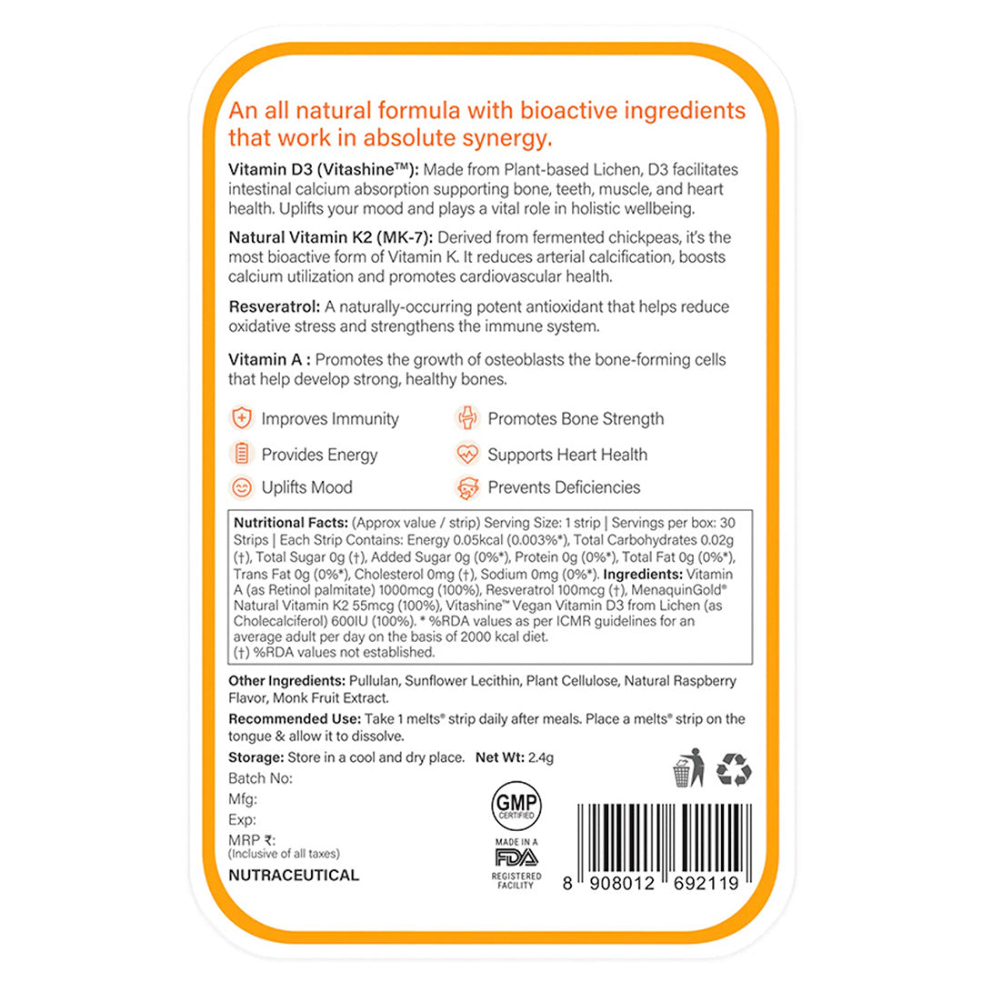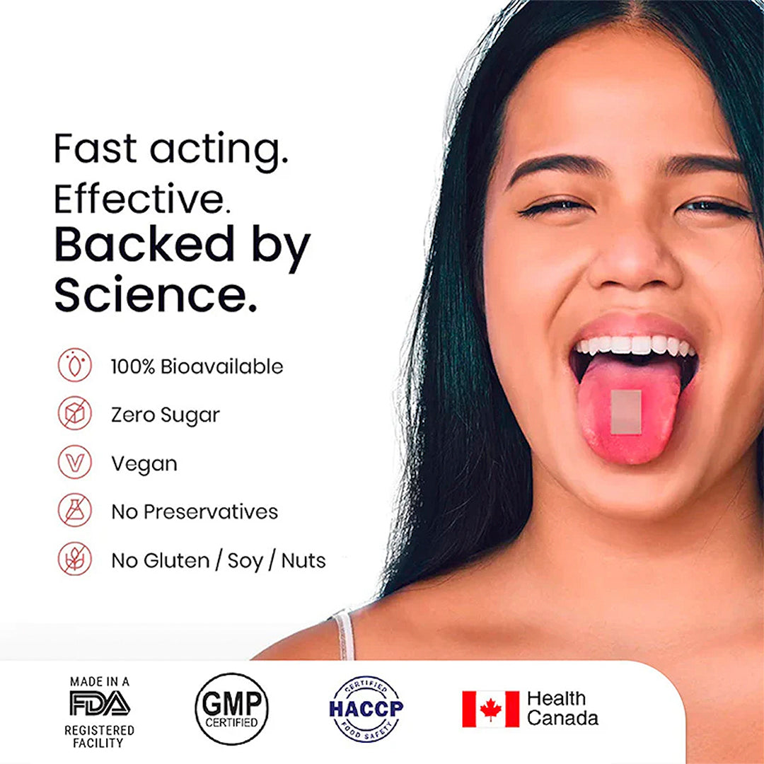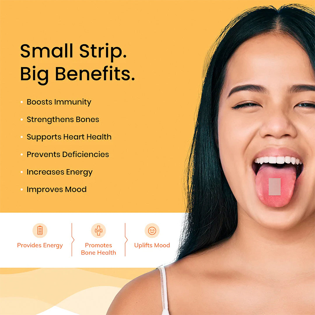 Our strips are made from 100% natural ingredients. ensuring a clean and efiective product. With micronized active ingredients for enhanced absorption, these strips require no water and can be taken anywhere-no swallowing necessary.Enjoy 100% bioavailability for rapid nutrient delivery and instant benefits. Each strip offers a precise dose for consistent intake and optimal results.