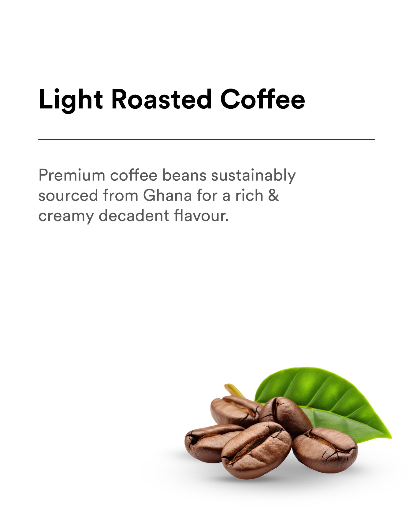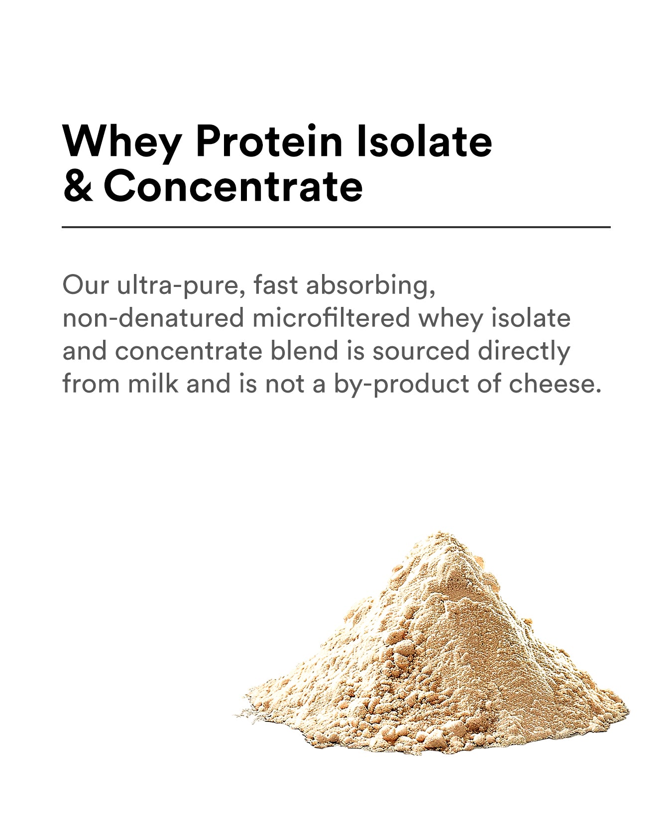 Our ultra-pure, fast-absorbing Whey Isolate + Concentrate is sourced directly from milk, processed at low temperatures without acids or bleach for a purer, more intact protein. Infused with premium light roasted coffee from Ghana and naturally sweetened with monk fruit, this blend includes clinically proven Velositol® to double protein synthesis in 8 weeks, along with L-Glutamine to support recovery. Natural enzymes from Bromelain and Papain aid digestion, while 4B CFU of probiotics improve gut health.