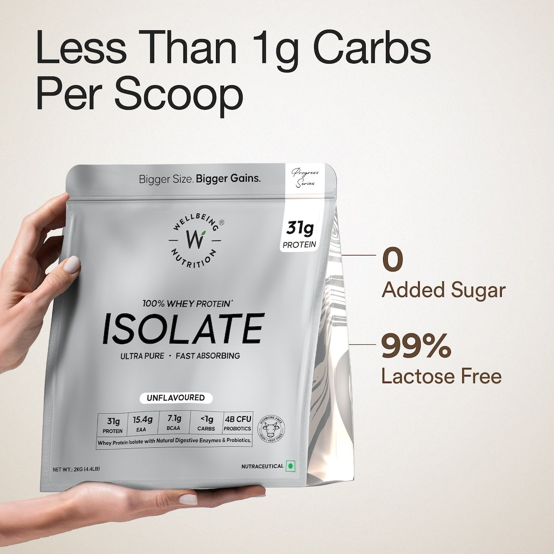 Finding a high-quality protein supplement can be challenging for individuals with lactose intolerance. Wellbeing Nutrition Whey Protein Isolate Unflavoured is an excellent choice, as it is 99% lactose-free and designed to be gentle on the digestive system. This ultra-pure protein powder provides 31g of protein, 15.4g of EAAs, and 7.1g of BCAAs per scoop, making it perfect for muscle recovery and growth without causing bloating or discomfort.